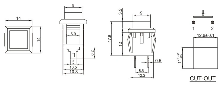 10Pcs PB04 Square 14x14mm 2Pin Momentary Self-Return SPST Mini Push Button Switc