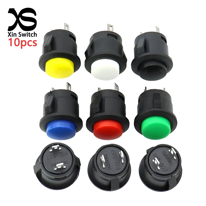 10PCS R13-507 Self Resetting Power Button Card Buckle Switch Without Lock 16mm Round Multiple Colors Switch 3A/6A 250V/125V AC