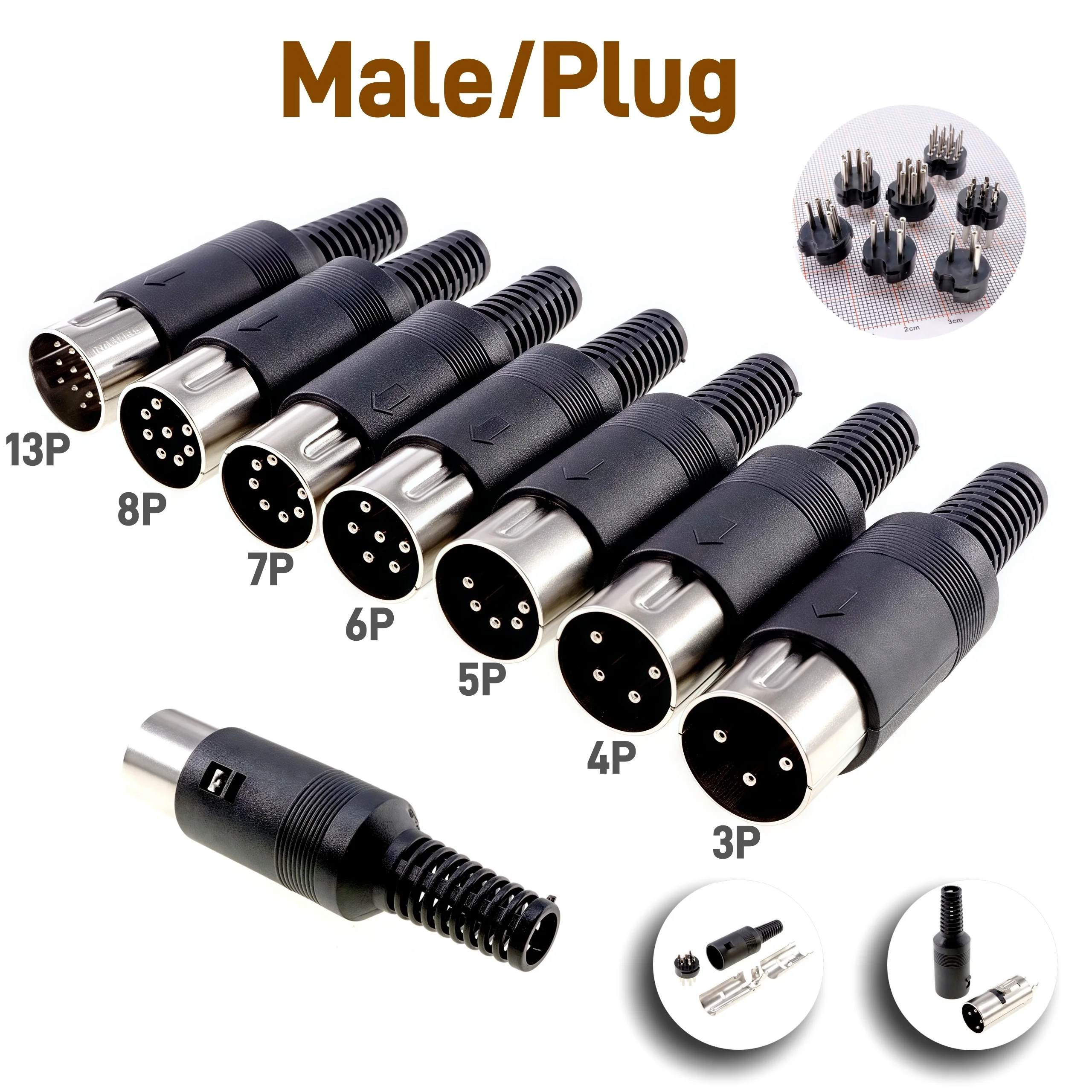 2/5 PCS 3P 4P 5P 6P 7P 8P 13Pin Din Male/Female Plug Soecket Jack With Plastic H
