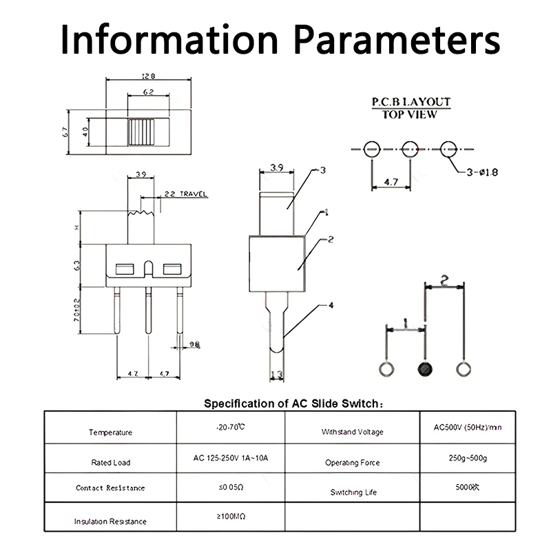 Main Technical Specifications Of SS-12D10 Sliding Switch