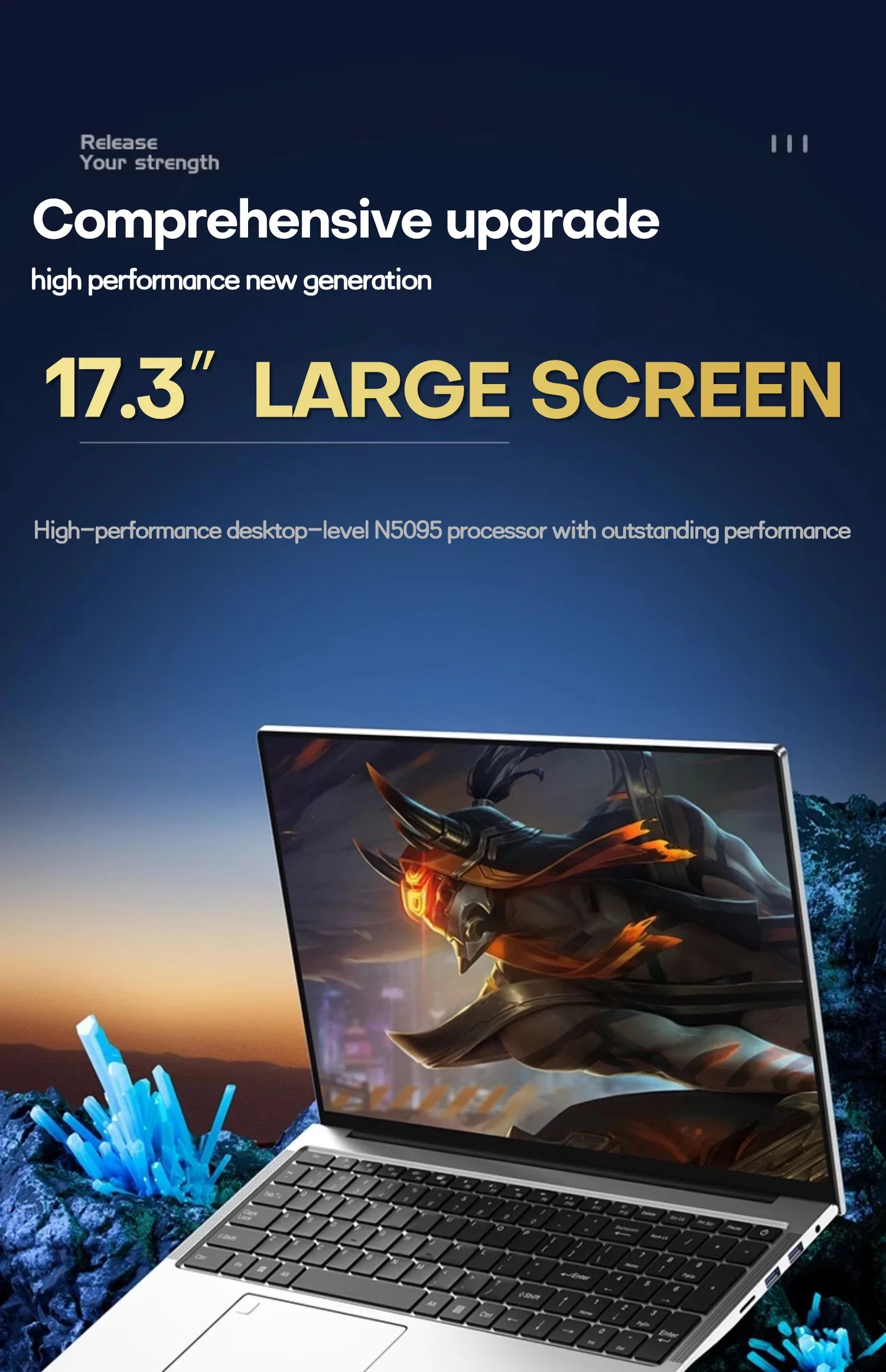 【Immersive IPS Display】This 17.3 inch laptop computer features an innovative thin-bezel display that provides more usable onscreen space for immersive FHD viewing. It also enables a larger screen to fit into a smaller chassis, giving you a laptop with a more compact footprint. Built-in front webcam centered above the screen frame, take photos or video calls at any time.