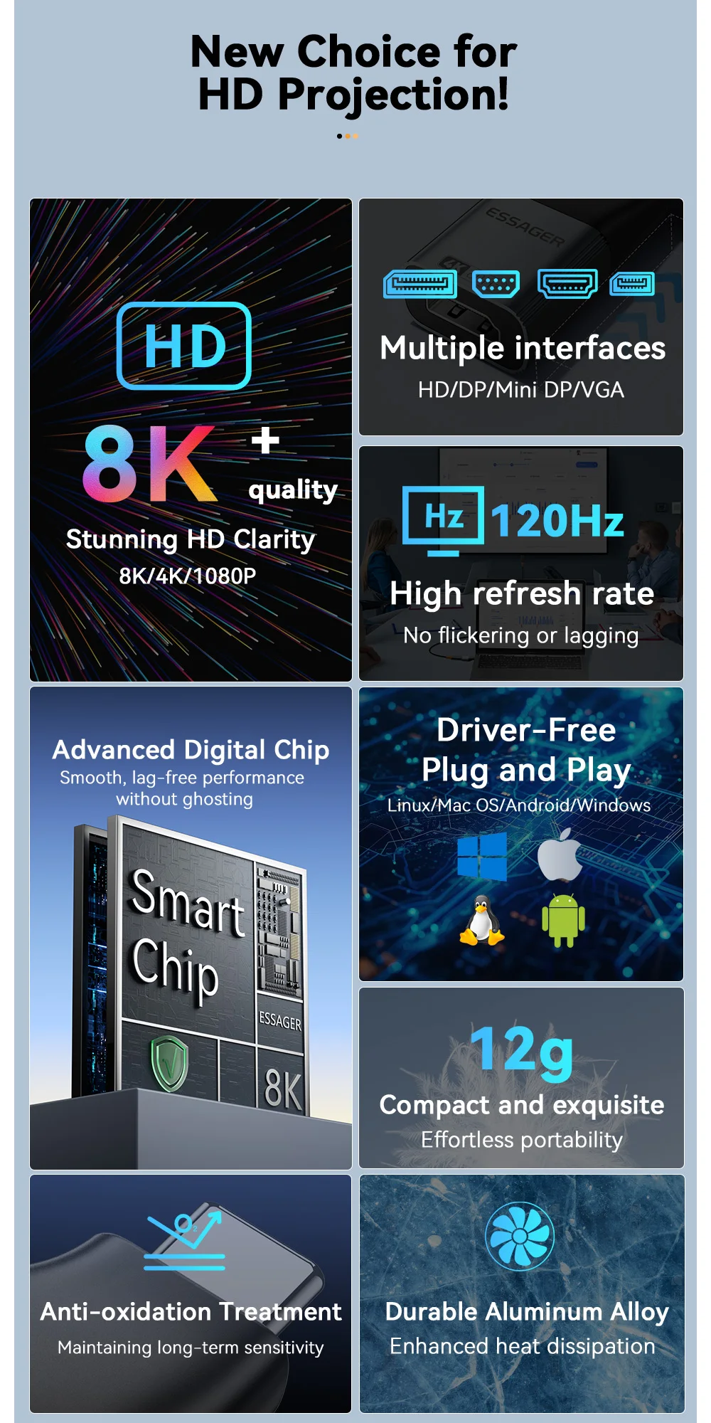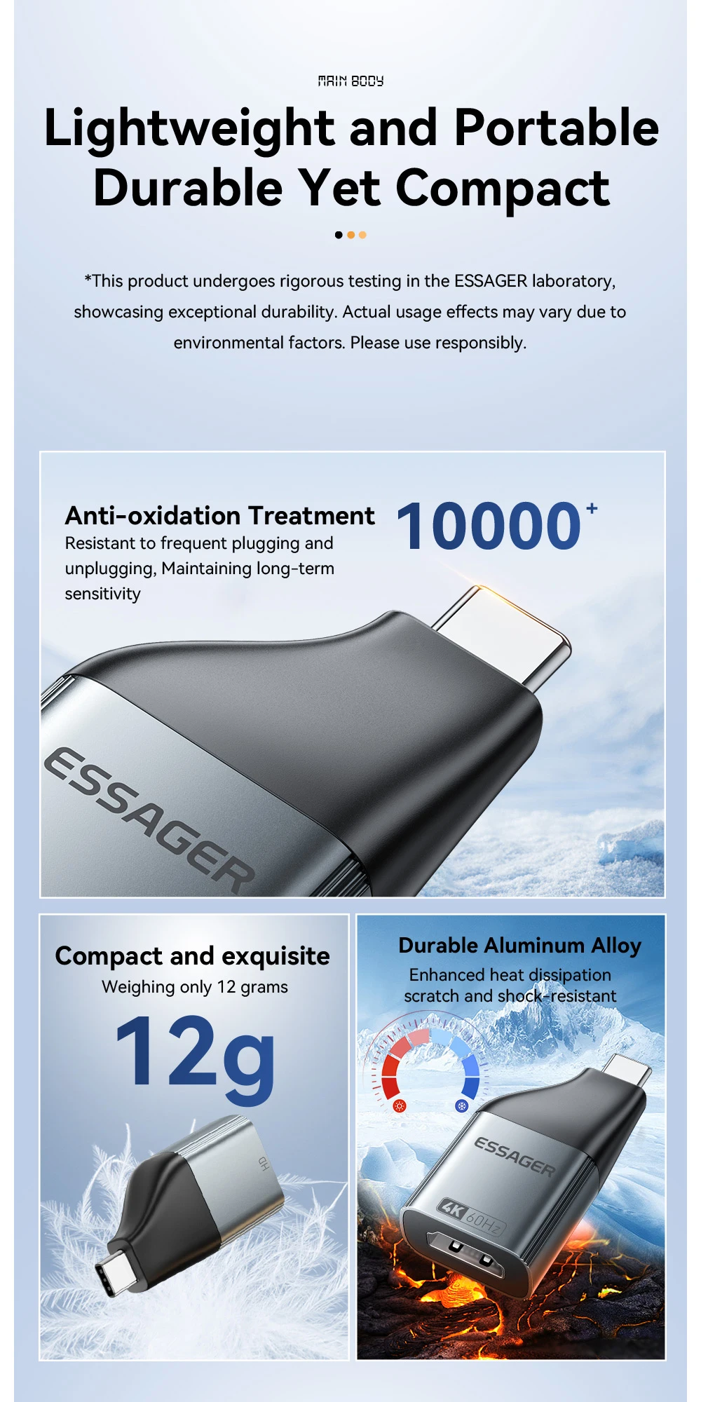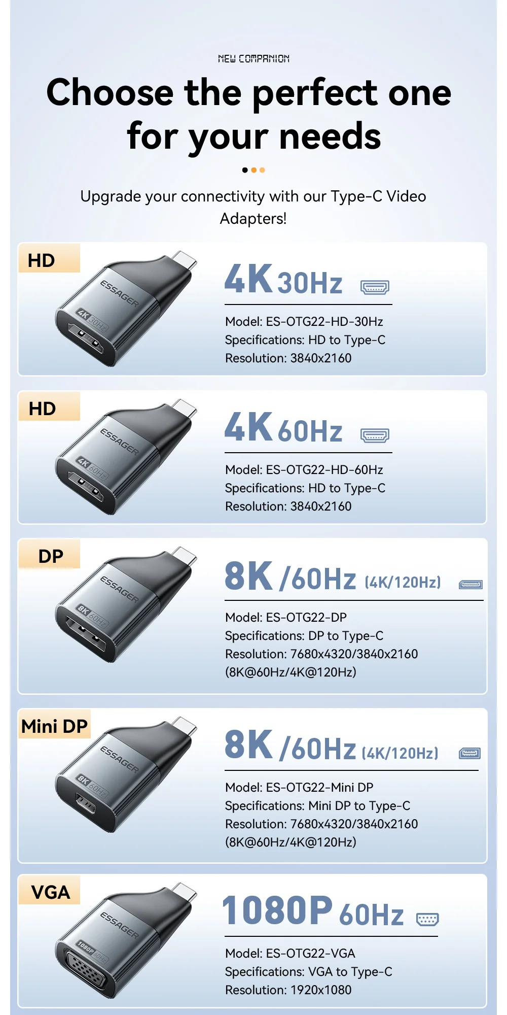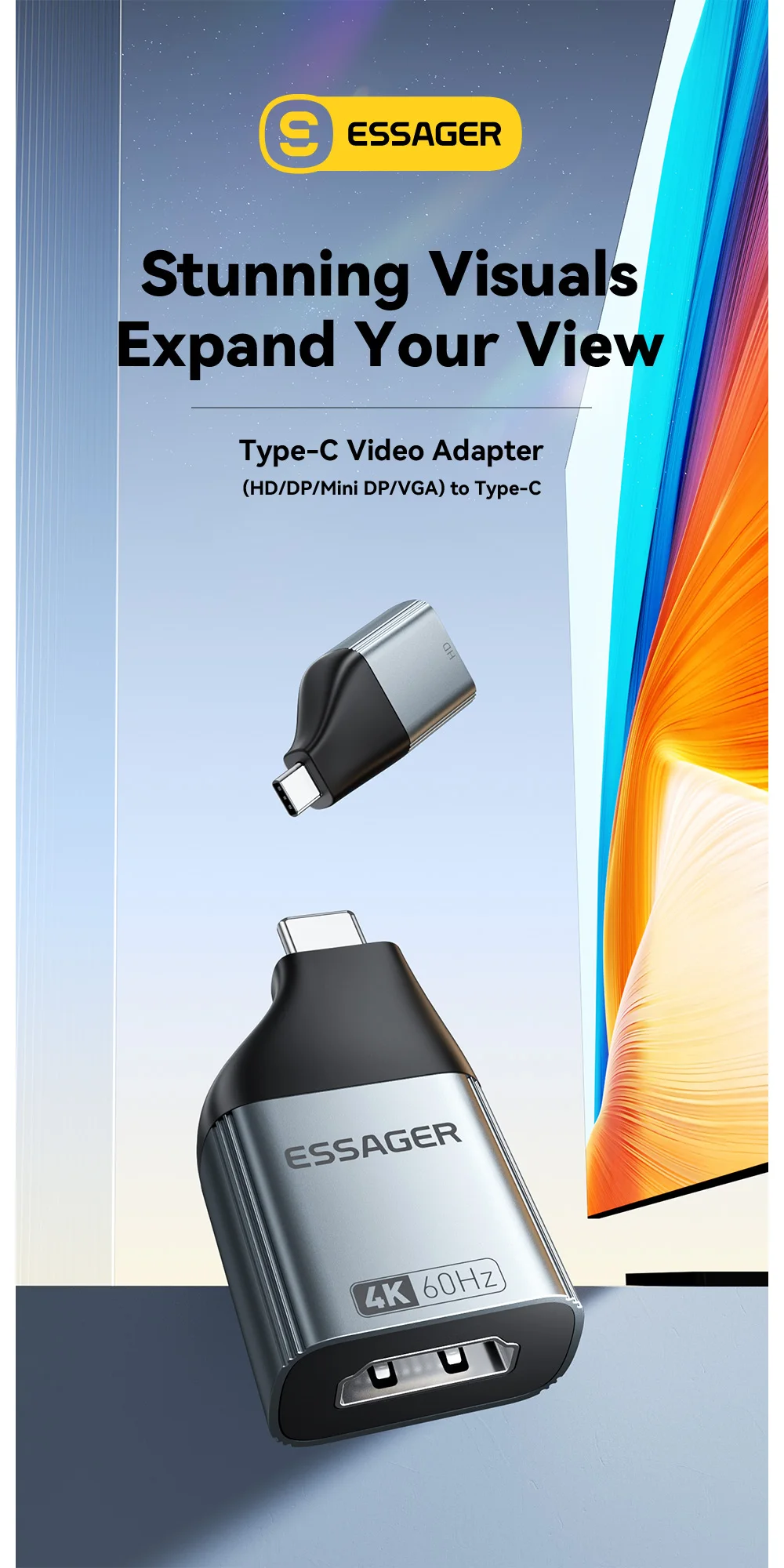 Essager USB Type-C to HDMI-Compatible DP VGA Mini DP Adapter4K@120Hz 8K@60Hz HD