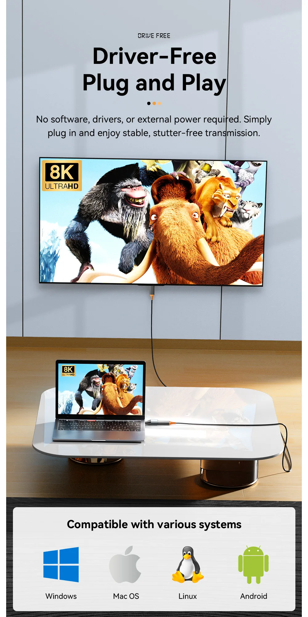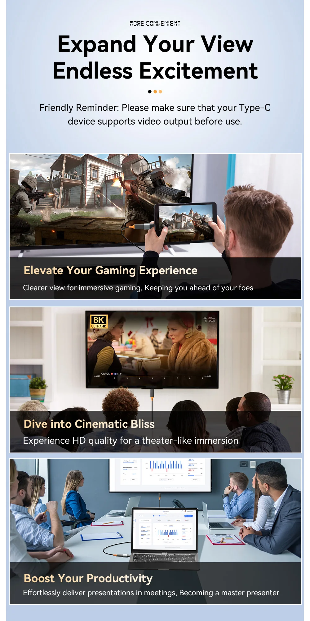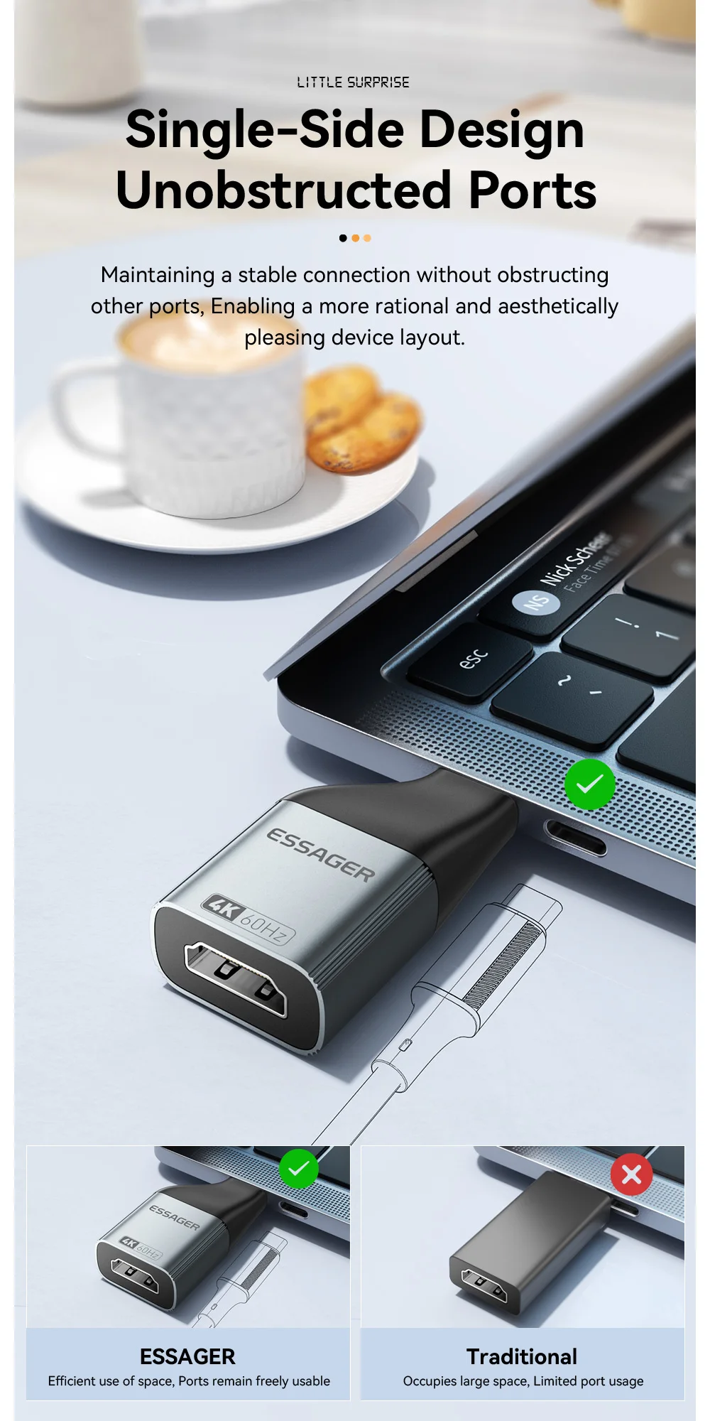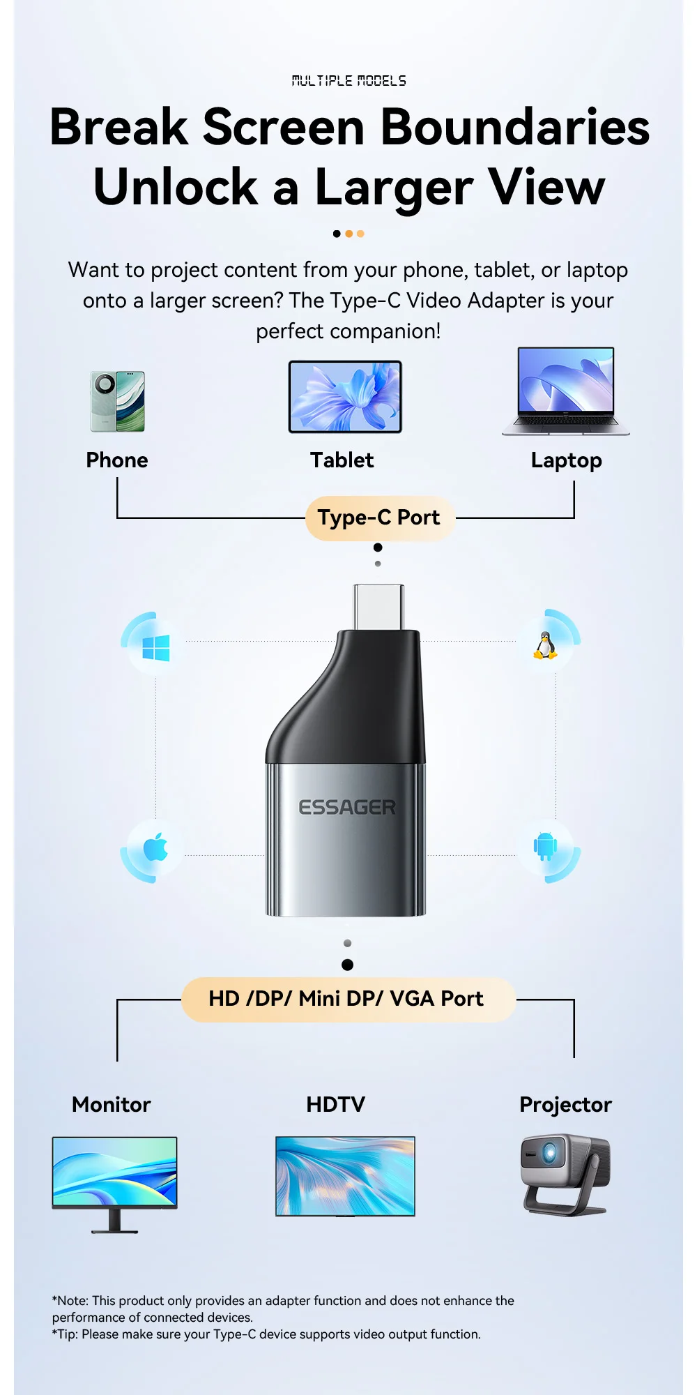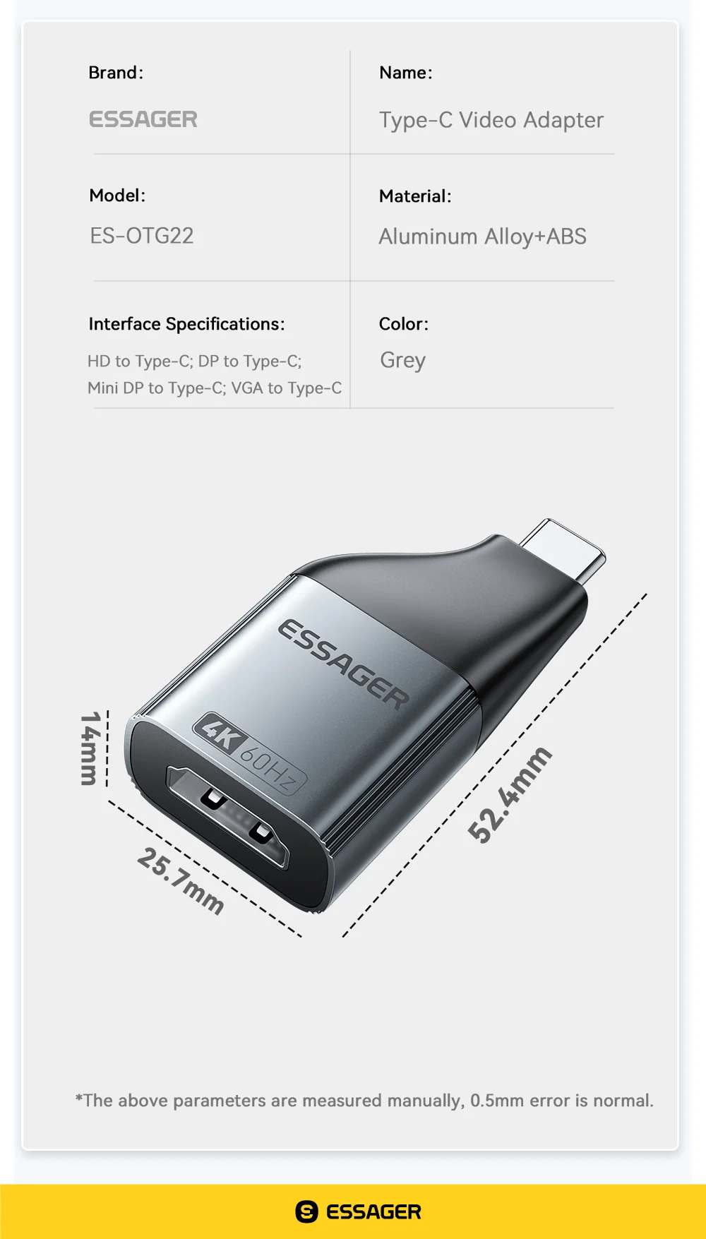Essager USB Type-C to HDMI-Compatible DP VGA Mini DP Adapter4K@120Hz 8K@60Hz HD