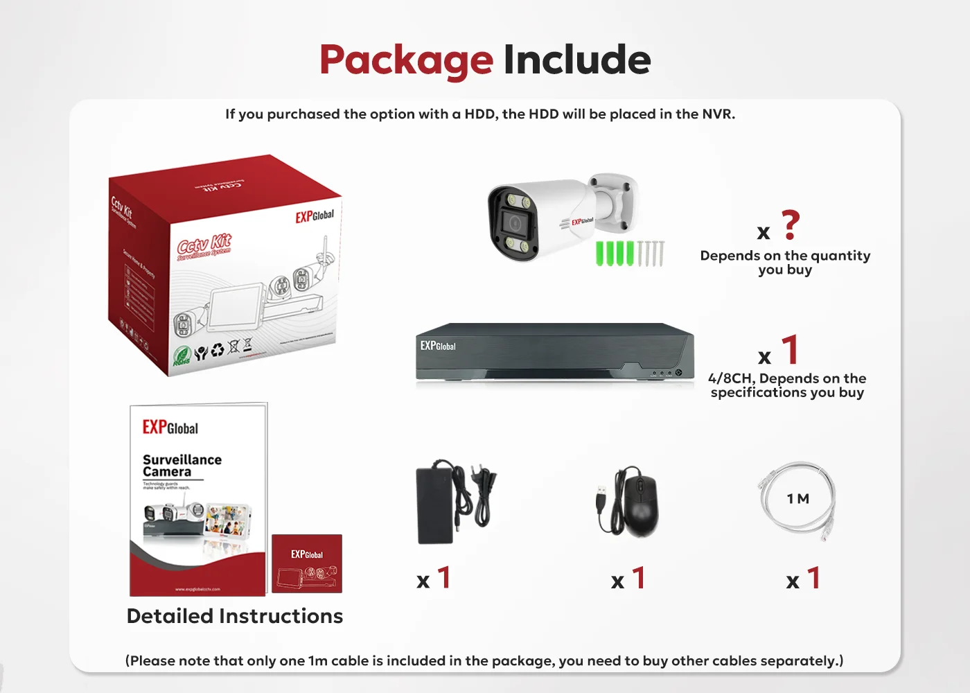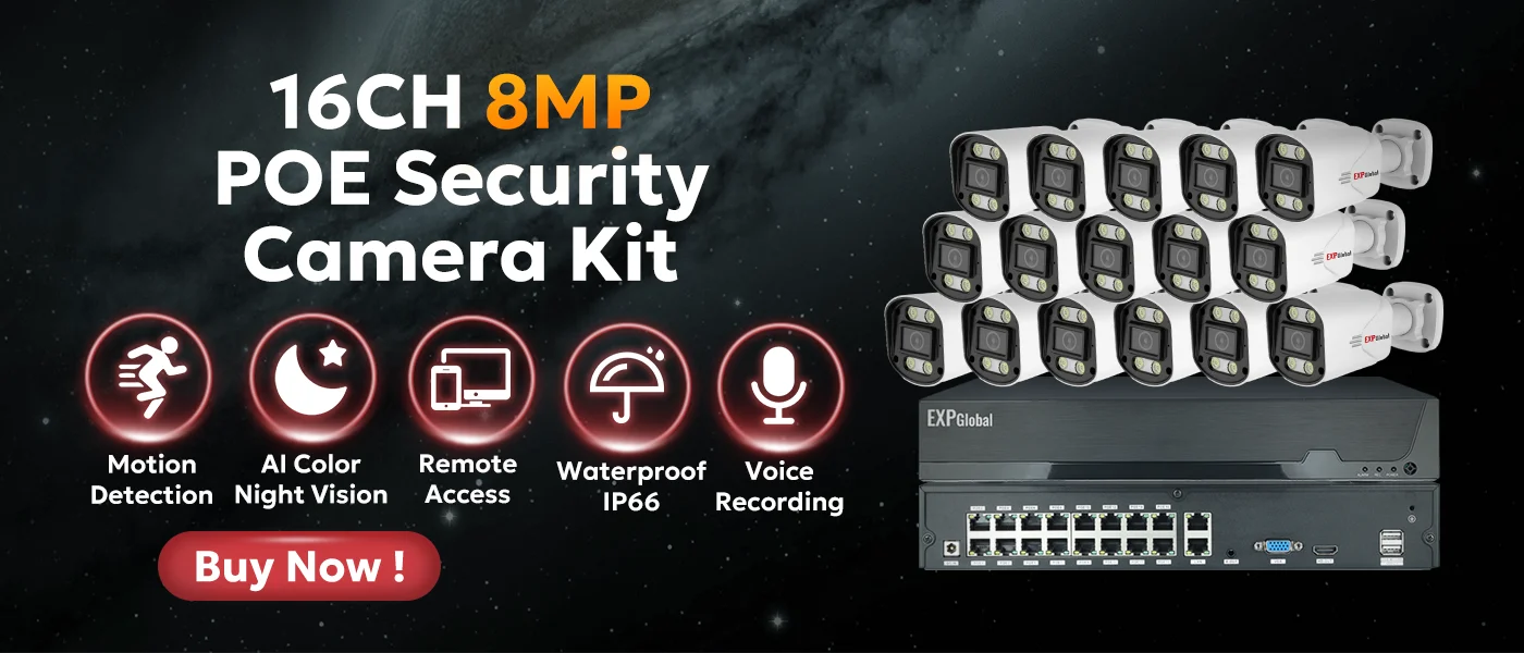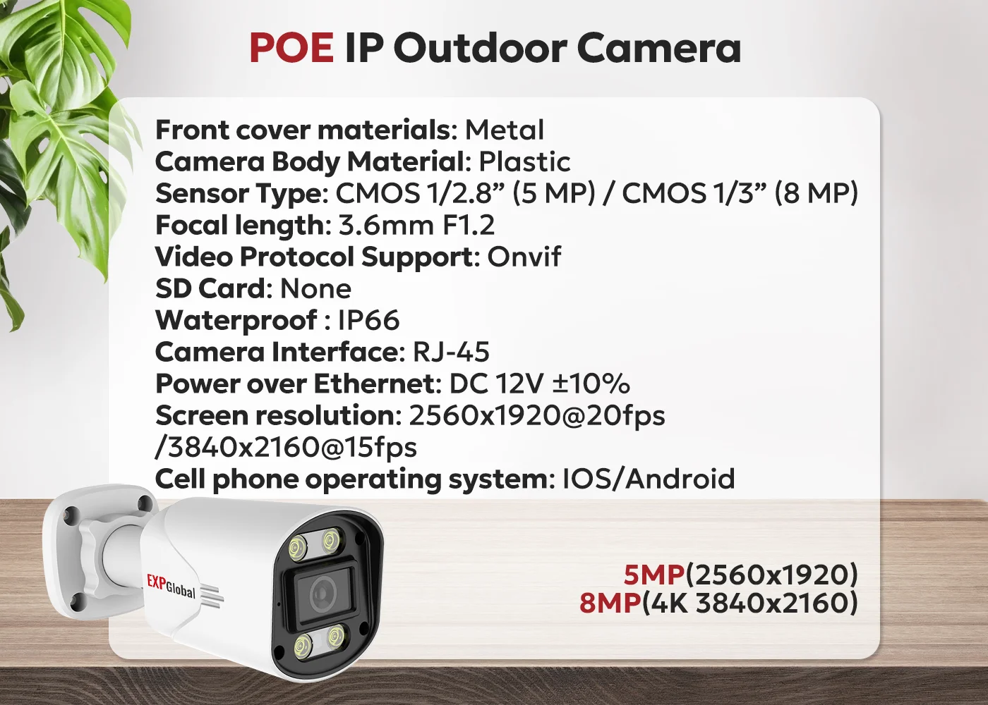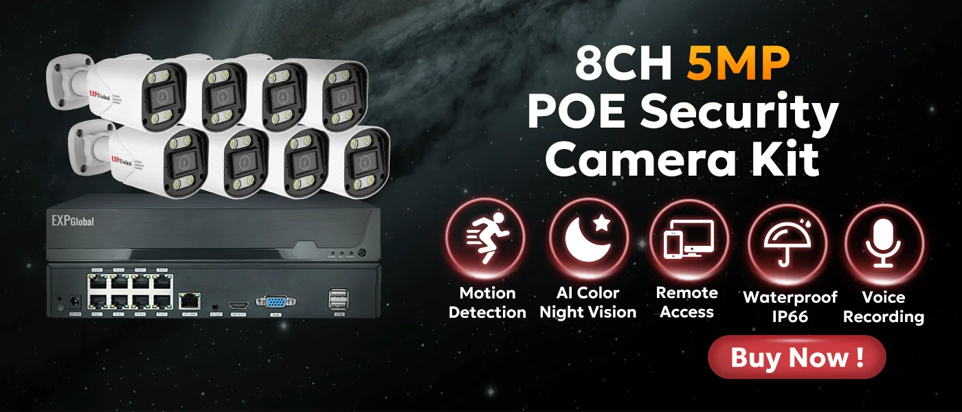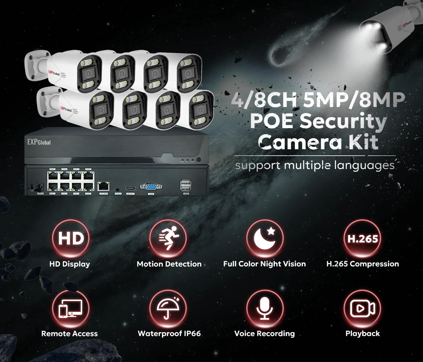 EXPGlobal 4CH/8CH Security Camera kit, HD,5MP,8MP H.265,Waterproof, CCTV, Bullet Camera, Outdoor Camera, Night Vision, Remote Access, POE, Voice Recording