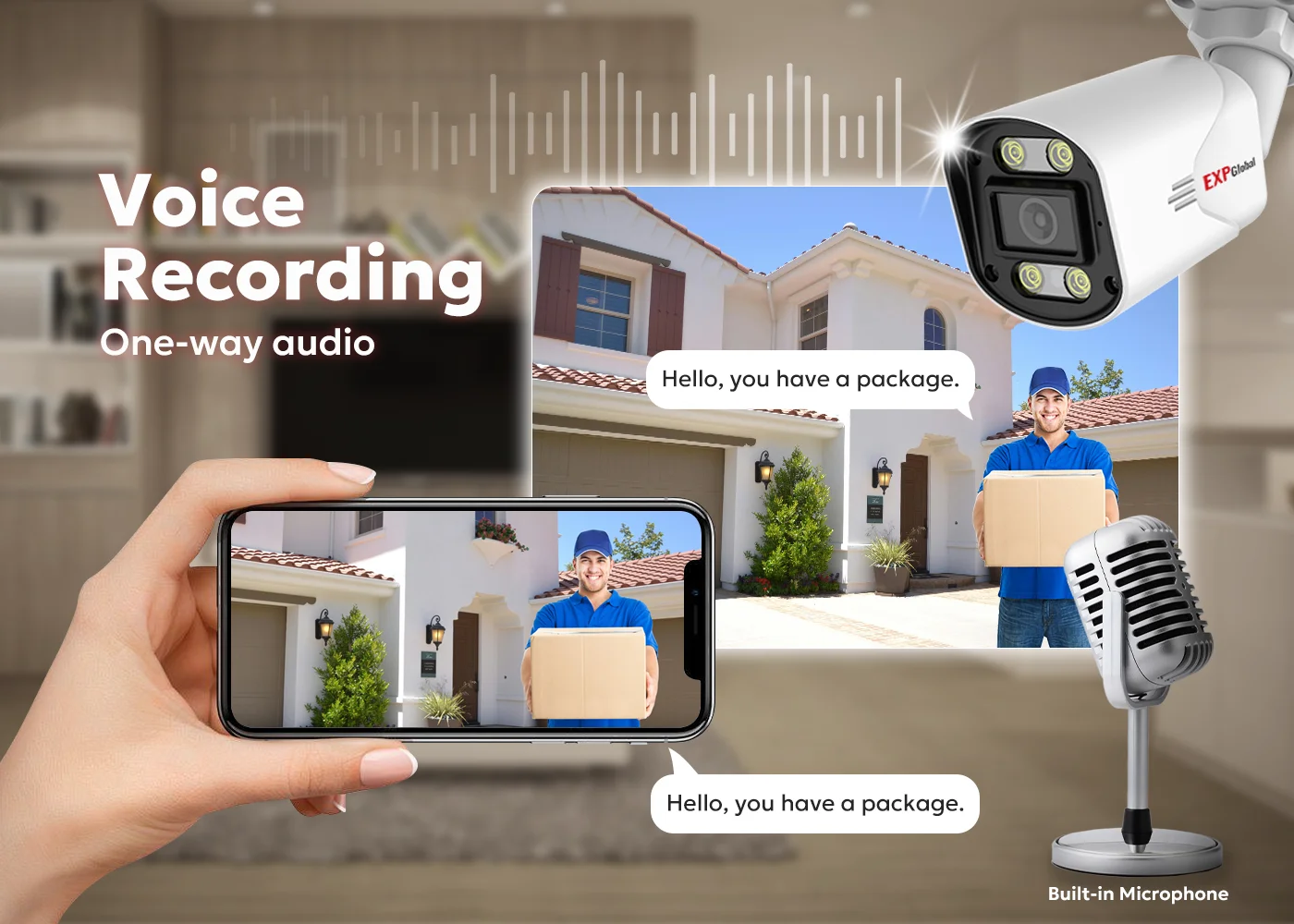 EXPGlobal cameras have a built-in microphone for real-time voice recording.