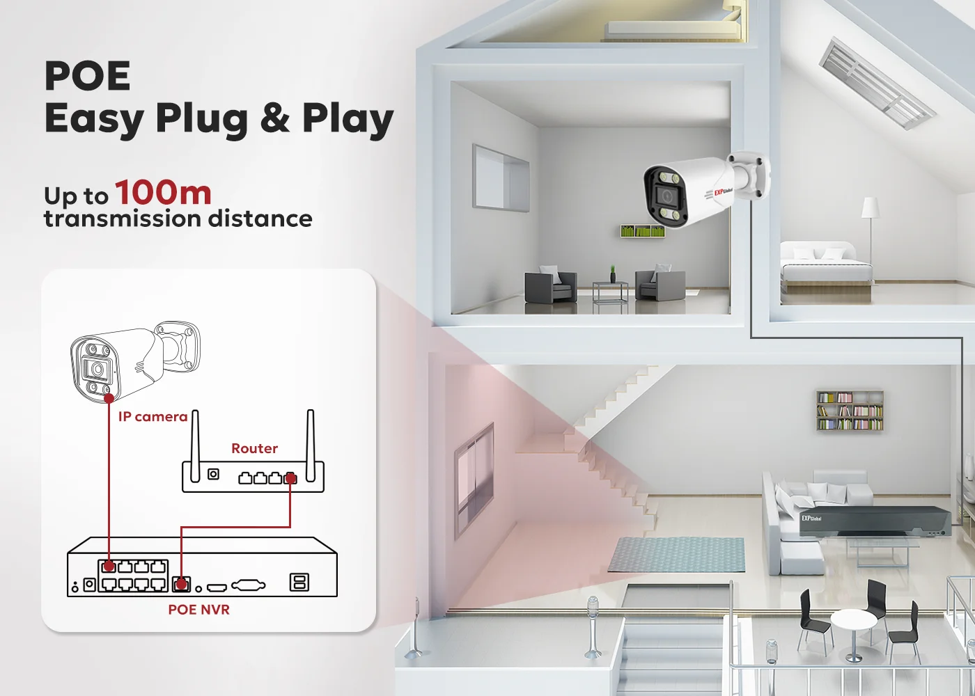 Why people prefer POE camera and NVR?No need of extra power cable or adapters or switch.Plug and play and super easy to setup.All you need is networking cable.