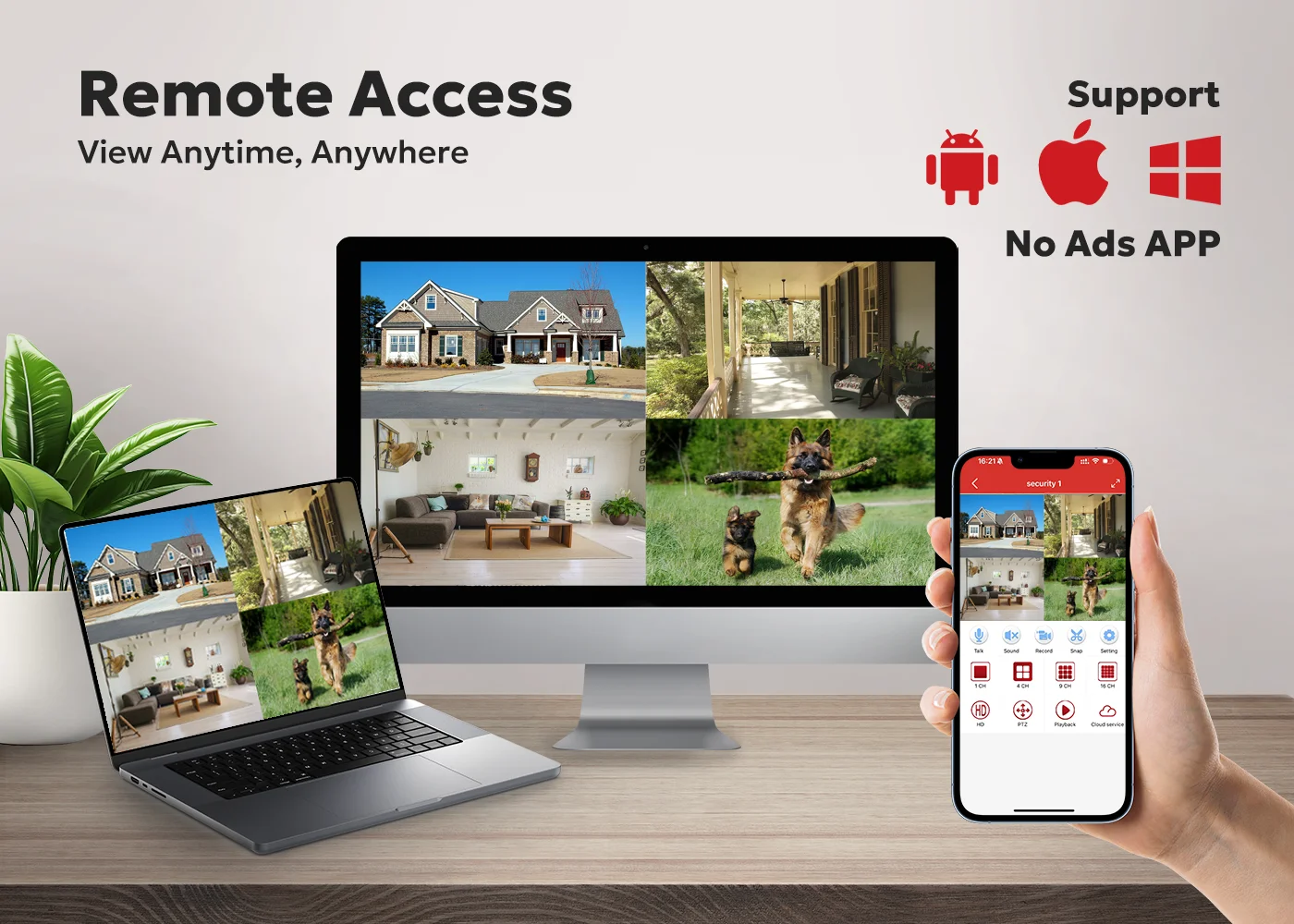 8. Support internet monitoring by mobile phone, tablet, PC, view anytime, anywhere.