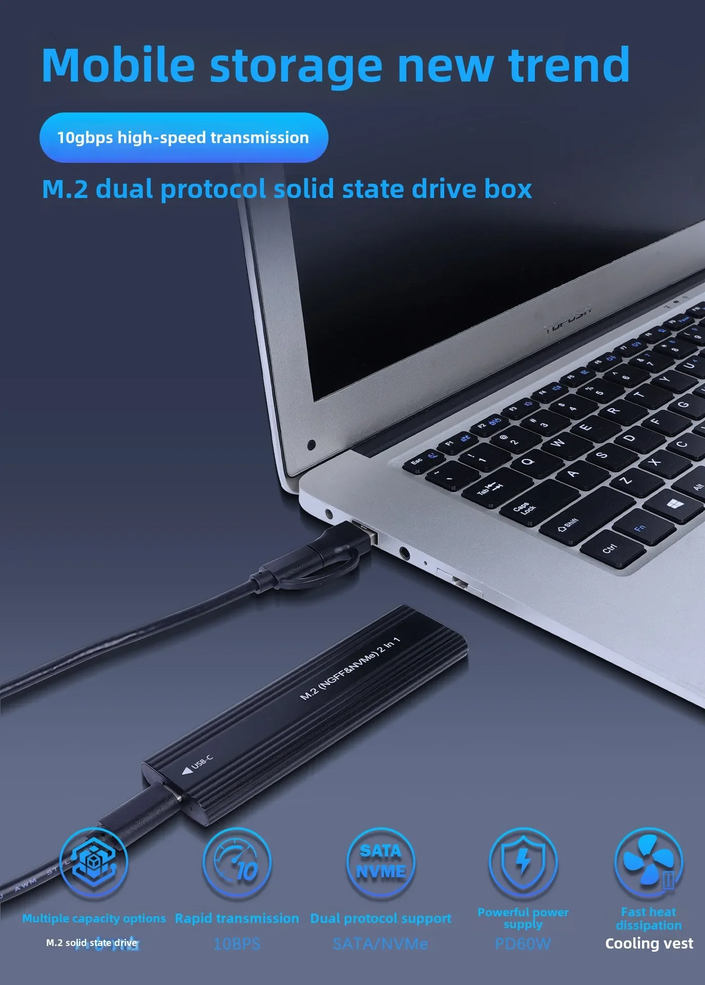M2 SSD Case NVME M.2 Solid State Drive External Enclosure 2230/2242/2260/2280 M.