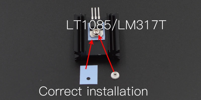 5.Onboard heatsinks used which would allow the LT1085CT to supply up to 1A continuous,More sustained currents are possible by using larger, offboard heatsinks.(2A)