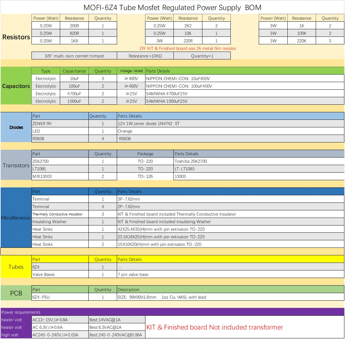 We do not provide information other than the product introduction page.MOFI-6Z4 Tube Mosfet Regulated Power Supply DIY Kit & Finished Board(235-280VDC) Project