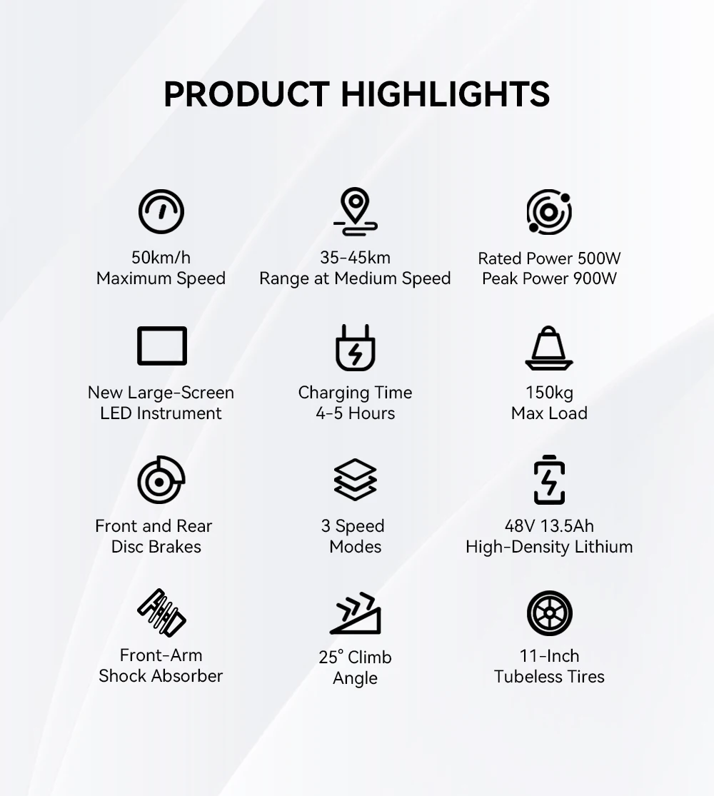 OOTD T10 E Scooter 900W Peak Motor 48V13.5AH Foldable 35-45kmLong Range 50km/h M