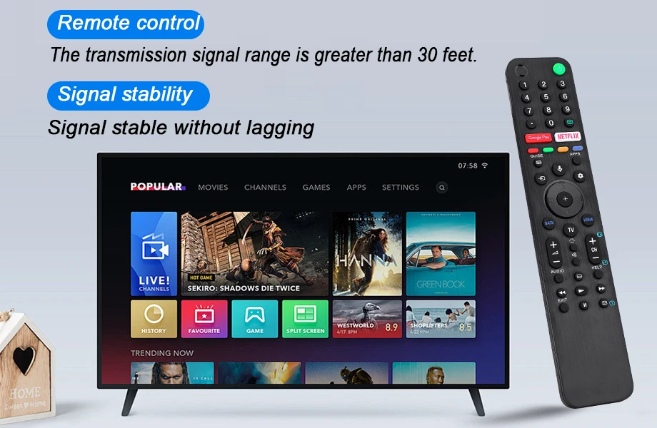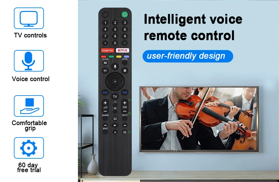 With Voice Search: The replacement SONY TV remote has a voice search button that tells your TV everything you want just by pressing the microphone button. You can also use the Netflix Google Play button to instantly access your favorite apps.