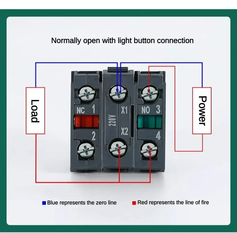Product SpecificationProduct name: Push Button SwitchContact material: Silver contactRated current: 10AOpening diameter: 22mmButton contact: 1NO/1NC/1NO1NC/2NOOperation mode: Momentary self-resetButton color: Red Yellow Blue Green White BlackVoltage Available: 12V,24V,220V