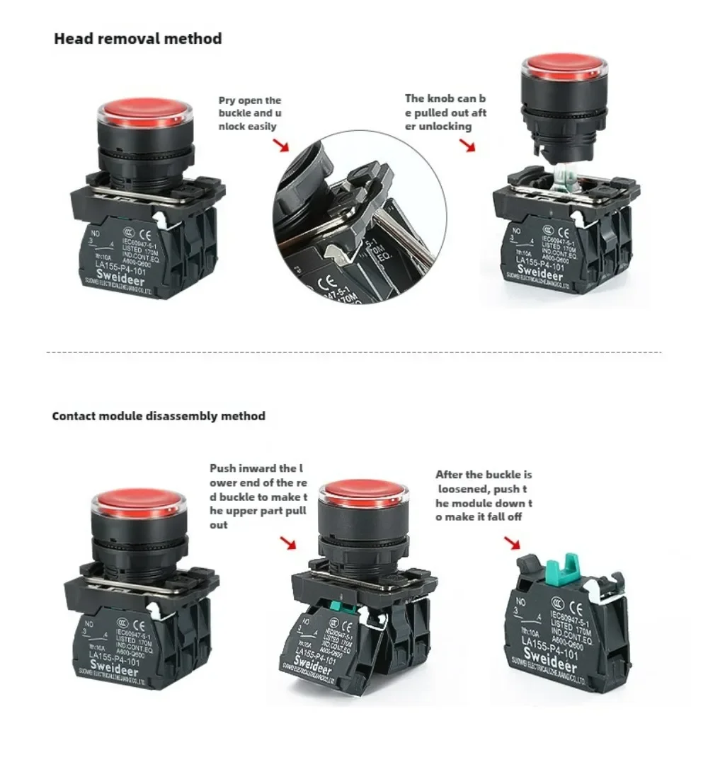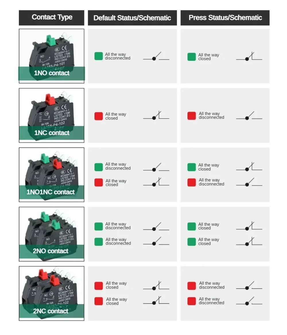 Button contact: 1NO/1NC/1NO1NC/2NO