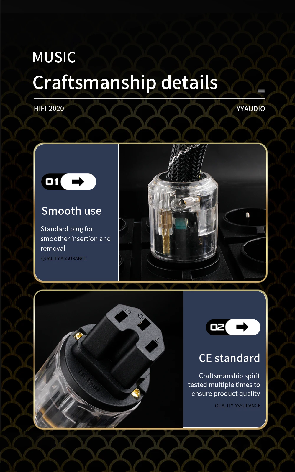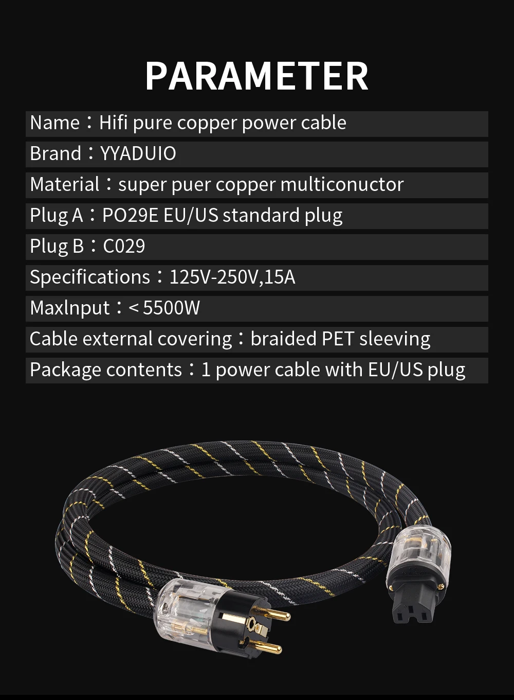 YYAUDIO Hi-End copper AC power cable hifi audio US/EU power cord pure copper power cable with P-029/P-029E power plug connector