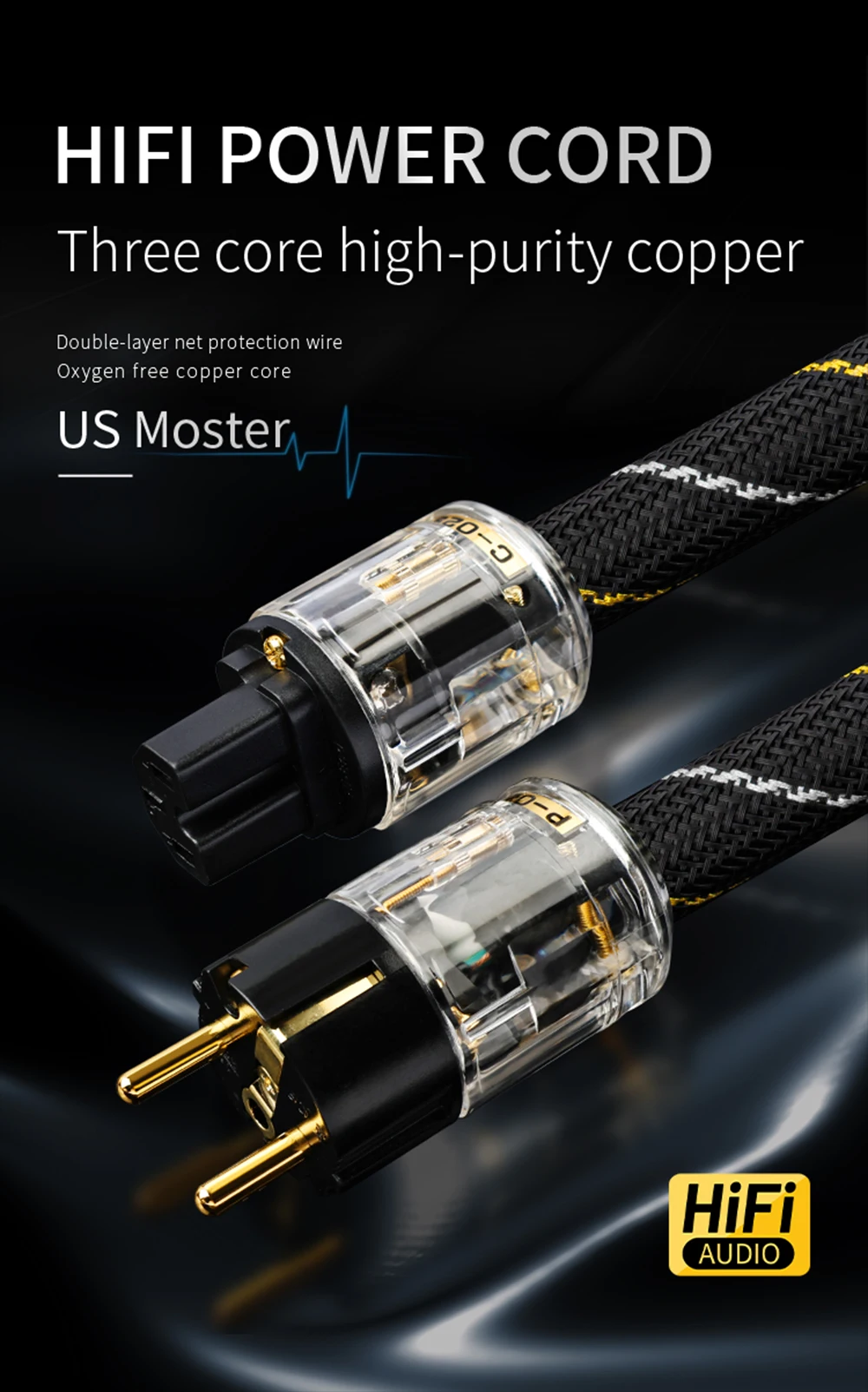 This high quality AC power cable handles high current and effectively reduces noise of entire system with wider dynamics, improved rhythm and overall gains beyond expectation. It is a perfect match to power filter, turntable, amplifier, CD player, DAC and any Hi Fi components.